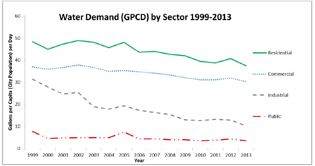 in many U.S. communities, documented that it was seeing this trend throughout its service communities. For the households it served it saw a roughly 15% reduction per user over the decade leading up to 2013. Keep in mind that these communities were not necessarily trying to incentivize conservation, but it happened anyway. Even Waukesha has experienced significant declines in water use in recent years.