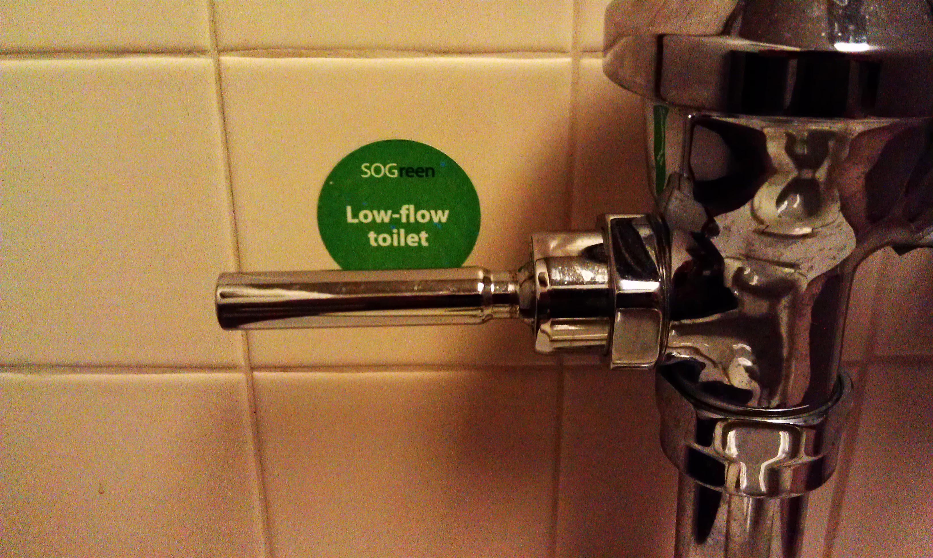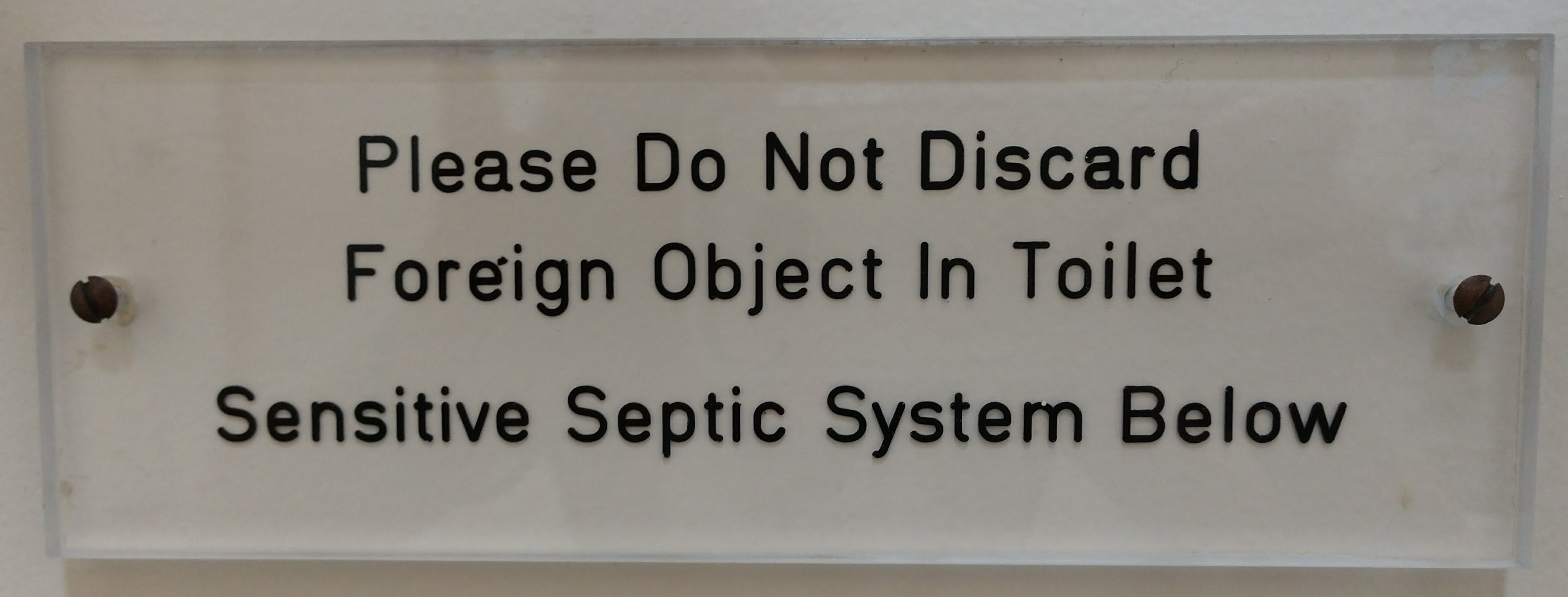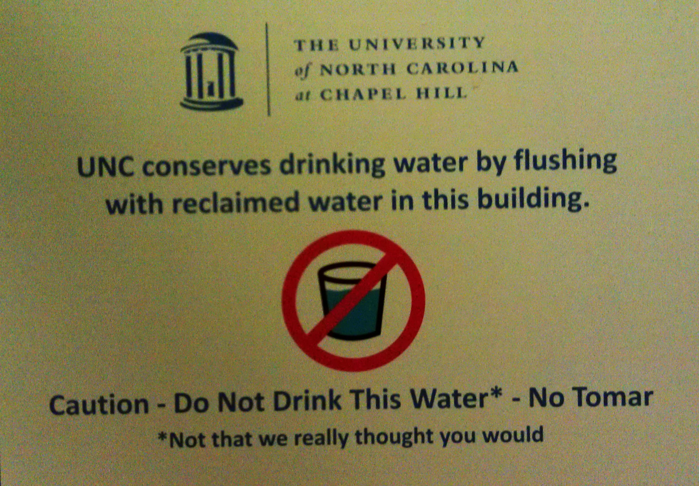 It’s increasingly frequent to encounter signs indicating that the toilets used reclaimed water or captured rainwater, and it’s nice that sometimes the signage reflects a sense of humor.