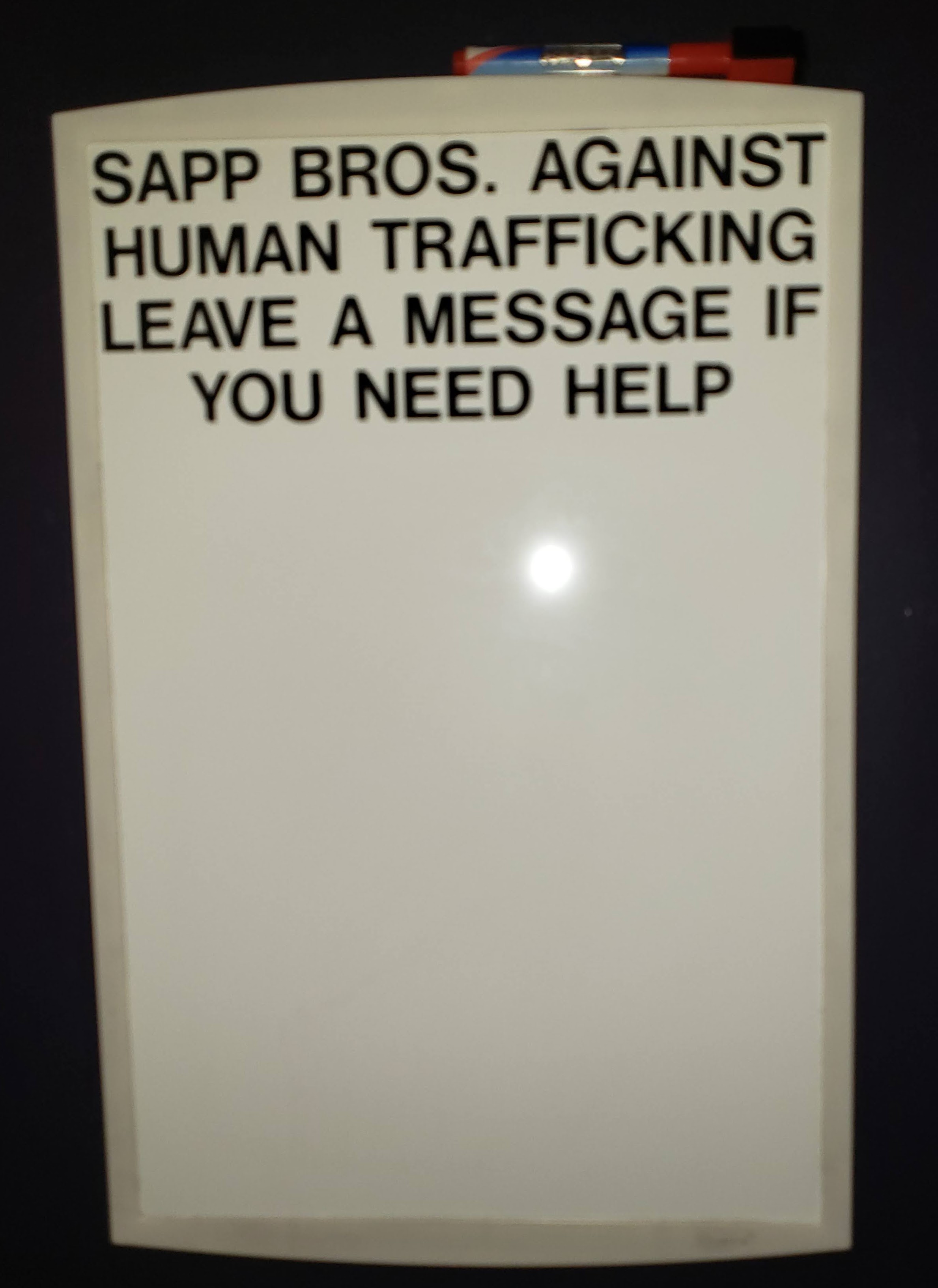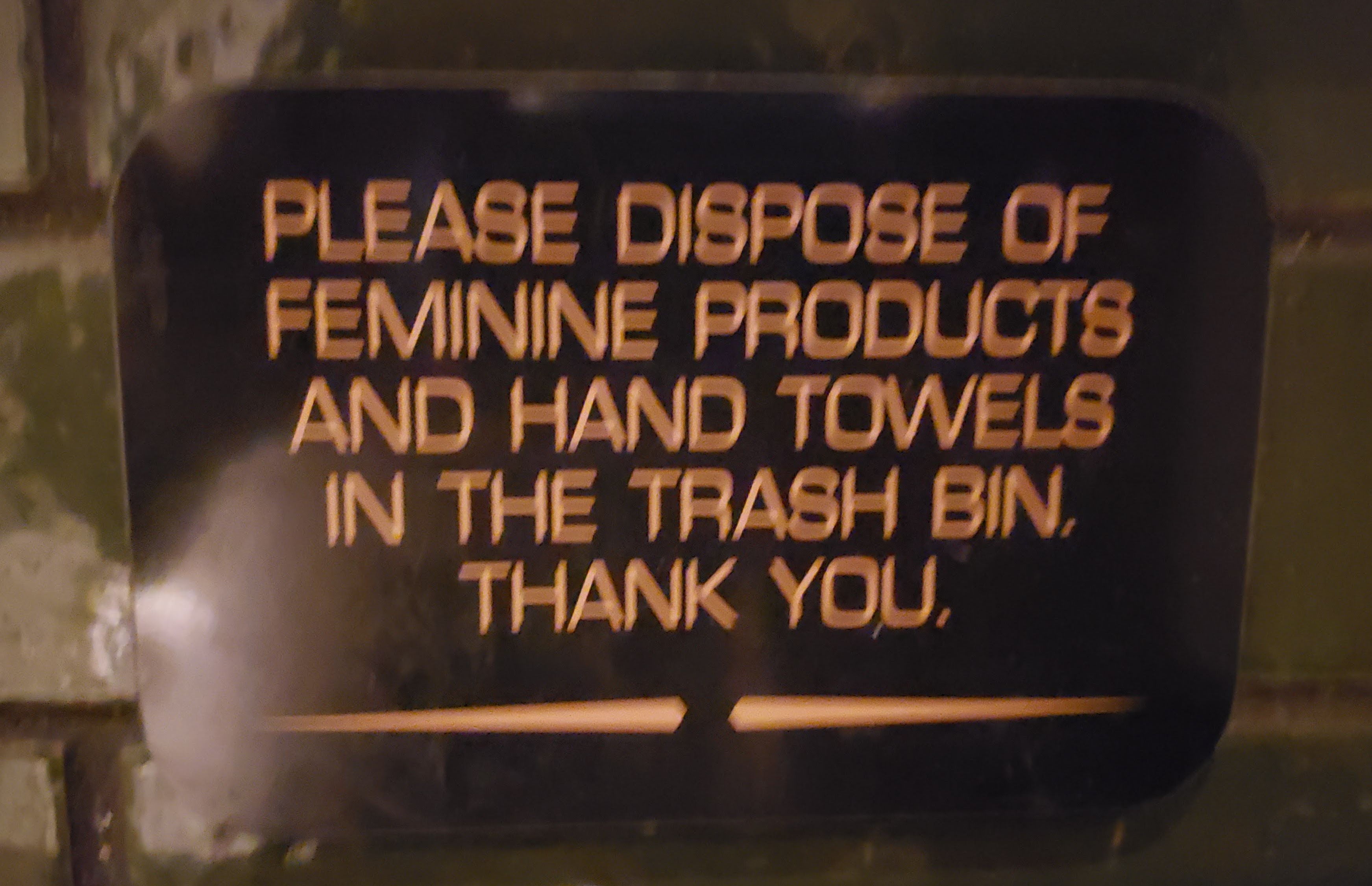 On a more serious note, that same Sapp Brother’s restroom had the following sign, reminding women on the road to watch out for each other. And telling me that bathroom reading is not always a laughing matter.