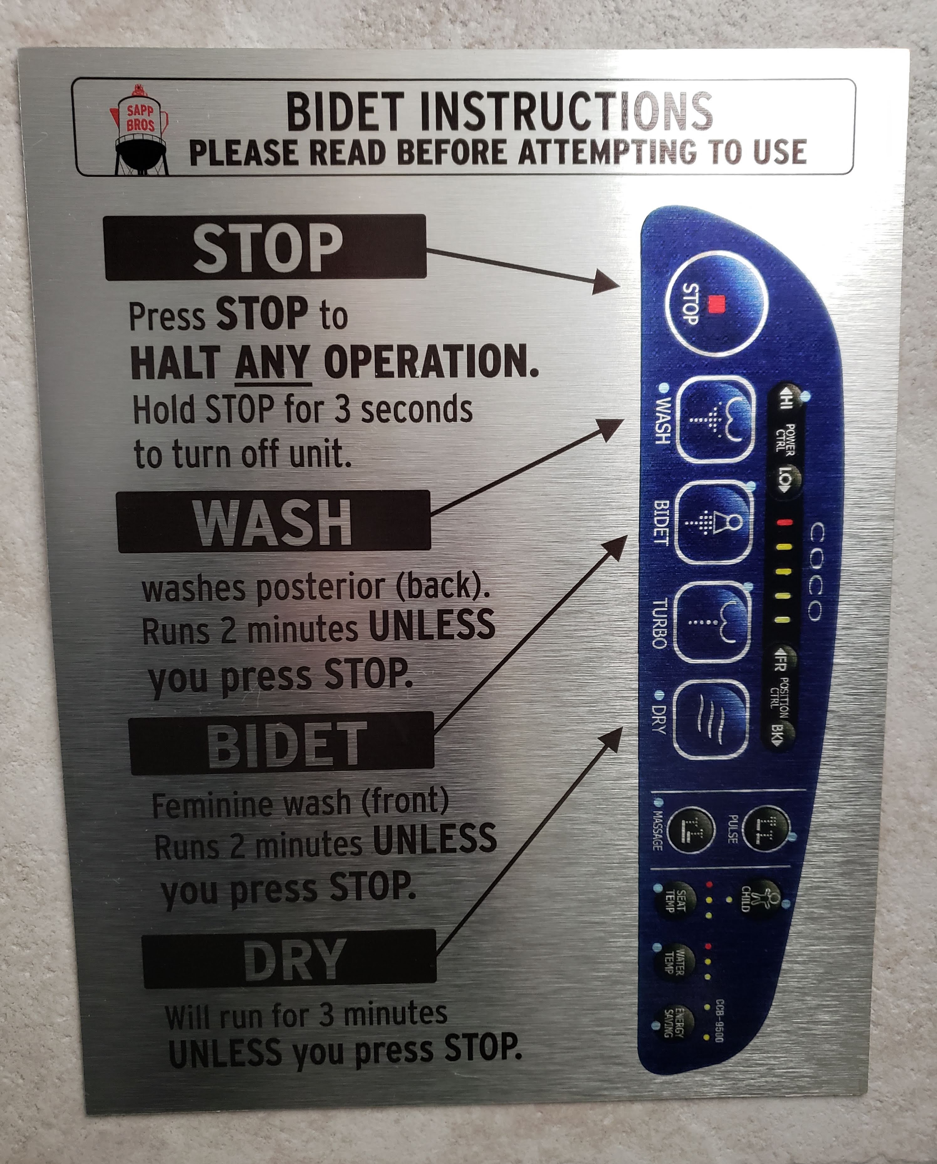 During a COVID19 cross-continent drive I encountered a high falutin heated toilet seats with multi-functional bidet where I least expected it: in western Nebraska at a Sapp Brothers truck stop. For real. Naturally I had to try it, but when that heated water hit my nether region I found the “STOP” button lickety split. No thank you.